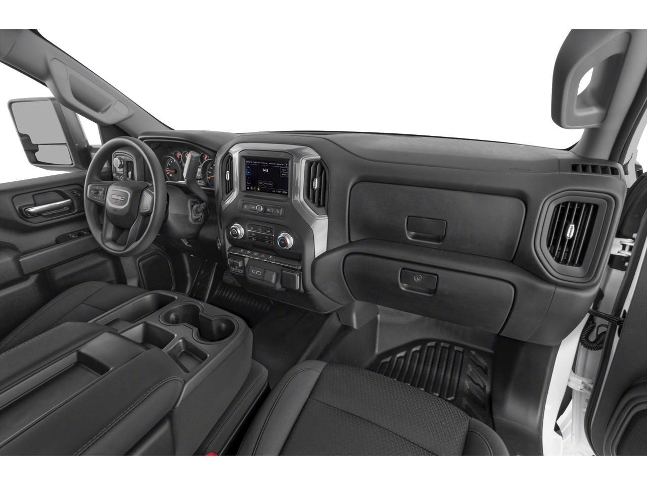 CONVENIENCE PACKAGE: includes (QT5) EZ Lift power lock and release tailgate, (K34) Cruise control, (AKO) tinted glass, (UF2) LED cargo bed lighting, (C49) rear-window defogger and (DBG) outside power-adjustable vertical trailering with heated upper glass, BEDLINER, SPRAY-ON, PICKUP BEDLINER: with GMC logo (does not include spray-on liner on tailgate due to Black composite inner panel), WHEELS, 18 (45.7 CM) 8-SPOKE PAINTED STEEL, SILVER EXTENDED, SNOW PLOW PREP/CAMPER PACKAGE: includes (KW5) 220-amp alternator, includes increased front GAWR on Heavy Duty models, (NZZ) skid plates (transfer case and oil pan), pass through dash grommet hole and roof emergency light provisions. Contact GM Upfitter Integration at www.gmupfitter.com for plow installation details and assistance. Note: if ordered for Camper usage, recommend ordering (UY2) Trailering wiring provisions, POWER OUTLET, INSTRUMENT PANEL, 120-VOLT: (400 watts shared with (KC9) bed mounted power outlet). GMC Pro with Summit White exterior and Jet Black interior features a 8 Cylinder Engine with 401 HP at 5200 RPM*.