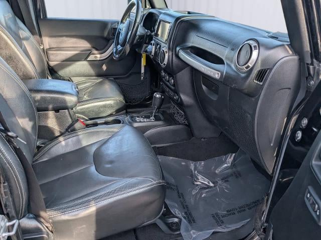 DUAL TOP GROUP Black 3-Piece Hard Top, Freedom Panel Storage Bag, Rear Window Defroster, Rear Window Wiper/Washer, Delete Sunrider Soft Top, Premium Black Sunrider Soft Top, BLACK, LEATHER TRIMMED BUCKET SEATS Front Seat Back Map Pockets, Driver Height Adjuster Seat, Heated Front Seats, TRANSMISSION: 5-SPEED AUTOMATIC (W5A580) Tip Start, Hill Descent Control, RADIO: 430N 6.5 Touchscreen Display, Remote USB Port, 40GB Hard Drive w/28GB Available, GPS Navigation, SiriusXM Travel Link, CONNECTIVITY GROUP Vehicle Information Center, Remote USB Port, Uconnect Voice Command w/Bluetooth®, Tire Pressure Monitoring Display, SUPPLEMENTAL FRONT SEAT SIDE AIR BAGS, REMOTE START SYSTEM, AIR CONDITIONING W/AUTO TEMP CONTROL Humidity Sensor, Air Filtering, ENGINE: 3.6L V6 24V VVT (STD).