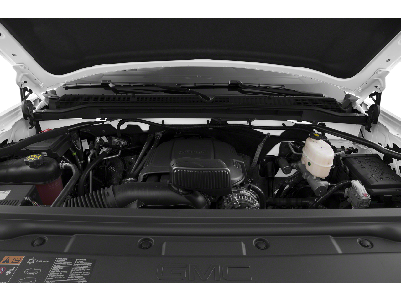 DURAMAX PLUS PACKAGE includes (L5P) Duramax 6.6L Turbo-Diesel V8 engine, (DQS) outside memory equipped heated power-adjustable vertical trailering mirrors, (MW7) Allison 1000 6-speed automatic transmission, (UQA) Bose premium audio system, (UD5) front and rear park assist and (IO6) 8 diagonal Color Touch Screen Navigation with GMC Infotainment, ALL TERRAIN HD PACKAGE for Crew Cab models only, includes (CGN) spray-on bed liner, (QGM) LT265/70R18E all-terrain, blackwall tires, (UD5) Front and Rear Park Assist, (Z71) Off-Road Suspension Package, (NZZ) underbody shield, all terrain grille insert with body color grille surround with chrome accents, (UVD) heated steering wheel, (VB5) front body-color bumper, (VT5) rear body-color bumper with Cornerstep, (DP6) Black painted mirror caps, (D75) body color door handles, (B86) body color side moldings, Black belt moldings, Black skid plate, sill plates, (RIA) floor liners, LPO and (RVS) 4 black round assist steps, LPO. Includes (AN3) front leather-appointed bucket seats and (UQA) Bose premium audio system. SEATS, FRONT FULL-FEATURE LEATHER-APPOINTED BUCKET with (KA1) heated seat cushions and seat backs. Includes 10-way power driver and front passenger seat adjusters, including 2-way power lumbar control, 2-position driver memory, adjustable head restraints, (D07) floor console, storage pockets and (K4C) Wireless charging. AUDIO SYSTEM, 8 DIAGONAL COLOR TOUCH SCREEN NAVIGATION WITH GMC INFOTAINMENT SYSTEM, AM/FM/SIRIUSXM, HD RADIO with USB ports, auxiliary jack, Bluetooth® streaming audio for music and most phones, Pandora Internet radio and voice-activated technology for radio and phone, WHEELS, 20 (50.8 CM) POLISHED ALUMINUM WITH DARK ARGENT METALLIC POCKETS includes 18 x 8 (45.7 cm x 20.3 cm) steel spare wheel. MIRRORS, CHROME, OUTSIDE HEATED POWER-ADJUSTABLE VERTICAL TRAILERING, MEMORY-EQUIPPED, UPPER GLASS, POWER-FOLDING AND MANUAL EXTENDING; Includes integrated turn signal indicators, consisting of 51 square inch flat mirror surface positioned over a 24.5 square inch convex mirror surface with a common head and lower convex spotter glass (convex glass is not heated and not power-adjustable) and addition of auxiliary cargo lamp for backing up (helps to see trailer when backing up with a trailer) and amber auxiliary clearance lamp, WINDOW, POWER, REAR SLIDING WITH REAR DEFOGGER, STEERING WHEEL, HEATED, LEATHER WRAPPED WITH AUDIO AND CRUISE CONTROLS, ENGINE, DURAMAX 6.6L TURBO-DIESEL V8, B20-DIESEL COMPATIBLE (445 hp [332 kW] @ 2800 rpm, 910 lb-ft of torque [1220 Nm] @ 1600 rpm) Includes capped fuel fill, (K40) exhaust brake, and (K05) engine block heater. TRANSMISSION, ALLISON 1000 6-SPEED AUTOMATIC, ELECTRONICALLY CONTROLLED with overdrive, electronic engine grade braking and tow/haul mode.